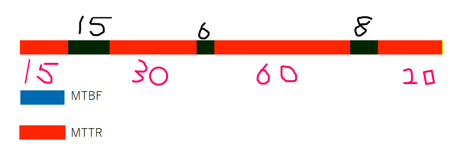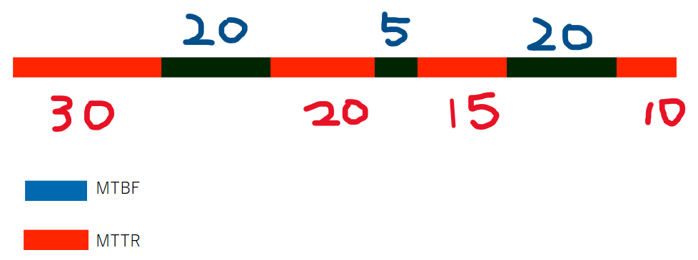 MTBF = (20h + 5h + 20h) / 3 times